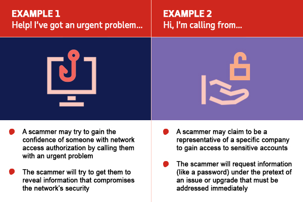 Unlike phishing, these scams can be highly personalized, and often involve a telephone call, contact through social media platforms, and even in-person interactions. They often rely on the natural tendency of people to want to help solve a problem.